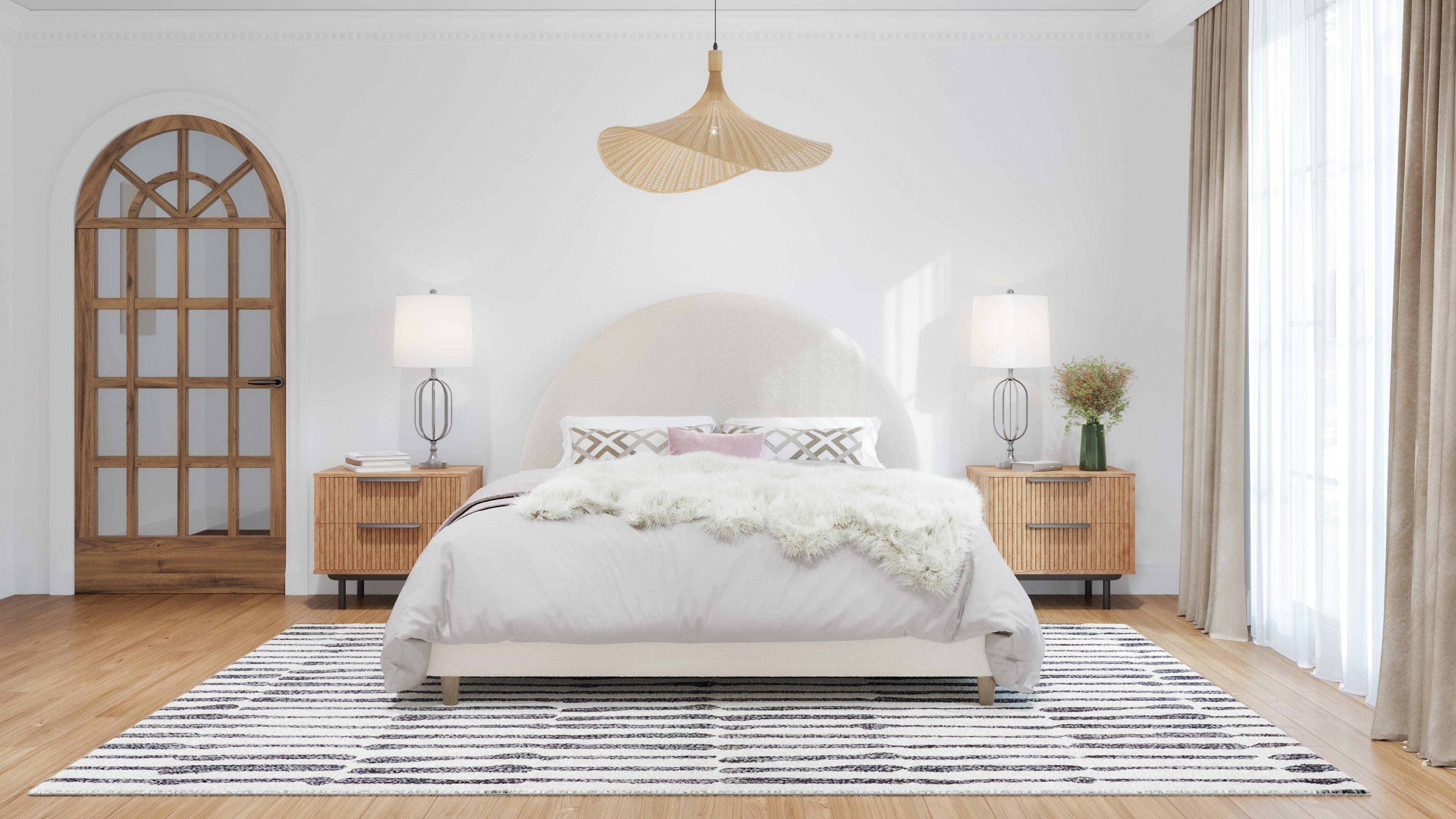 There are various ways you can incorporate boucle home decor into your living space. In addition to boucle bed frames, luxury boucle fabric makes a great option for throw pillows, blankets, and rugs. Tapestries and other decorative accents are similarly chic. Consider pairing boucle fabric with natural wood furniture in either a light or medium wood grain for a mid-century modern aesthetic.