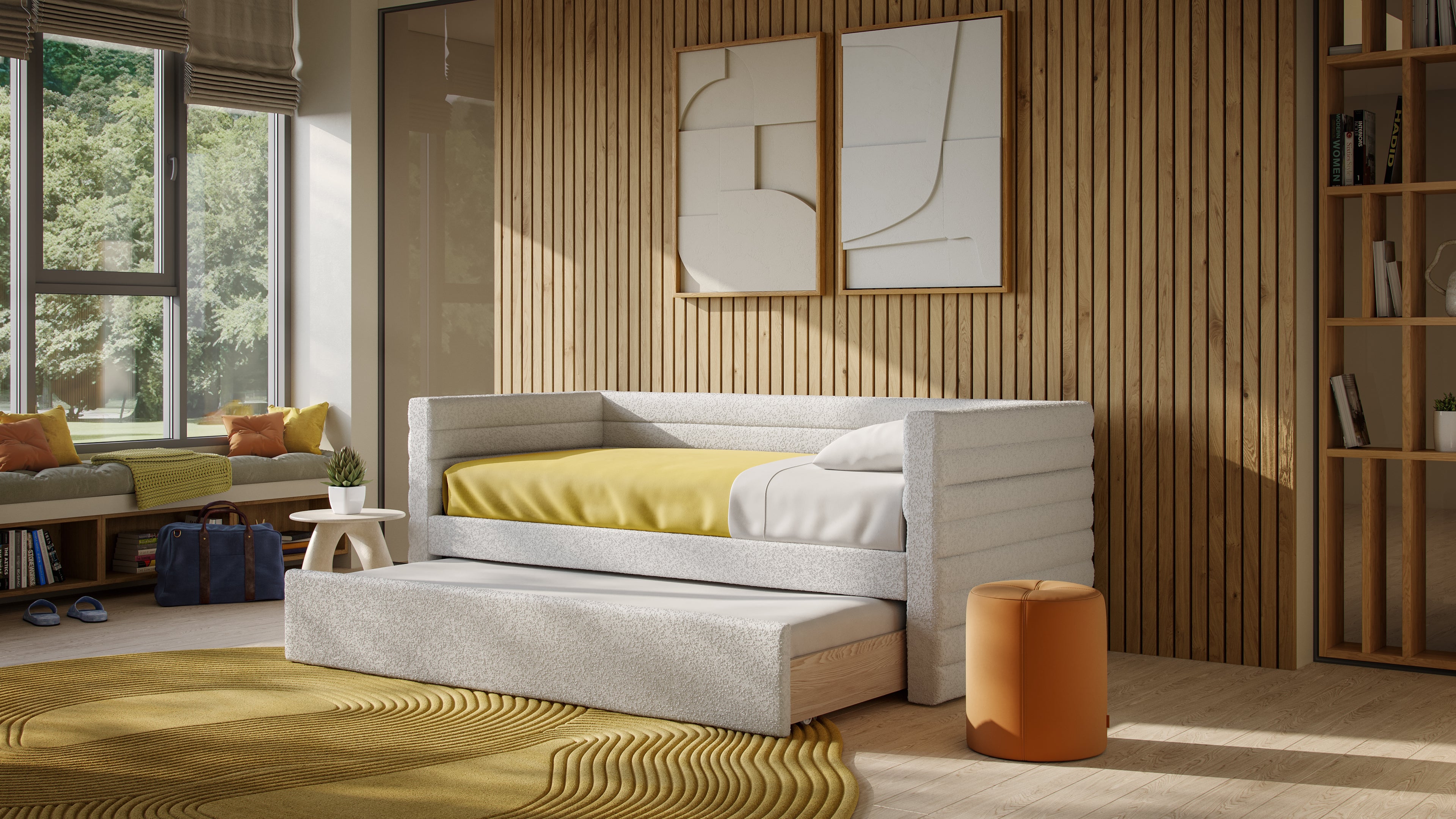 A daybed with trundle like this one does more with less. Sleep two in the space of one with an integrated storage feature discreetly tucked underneath the bed.