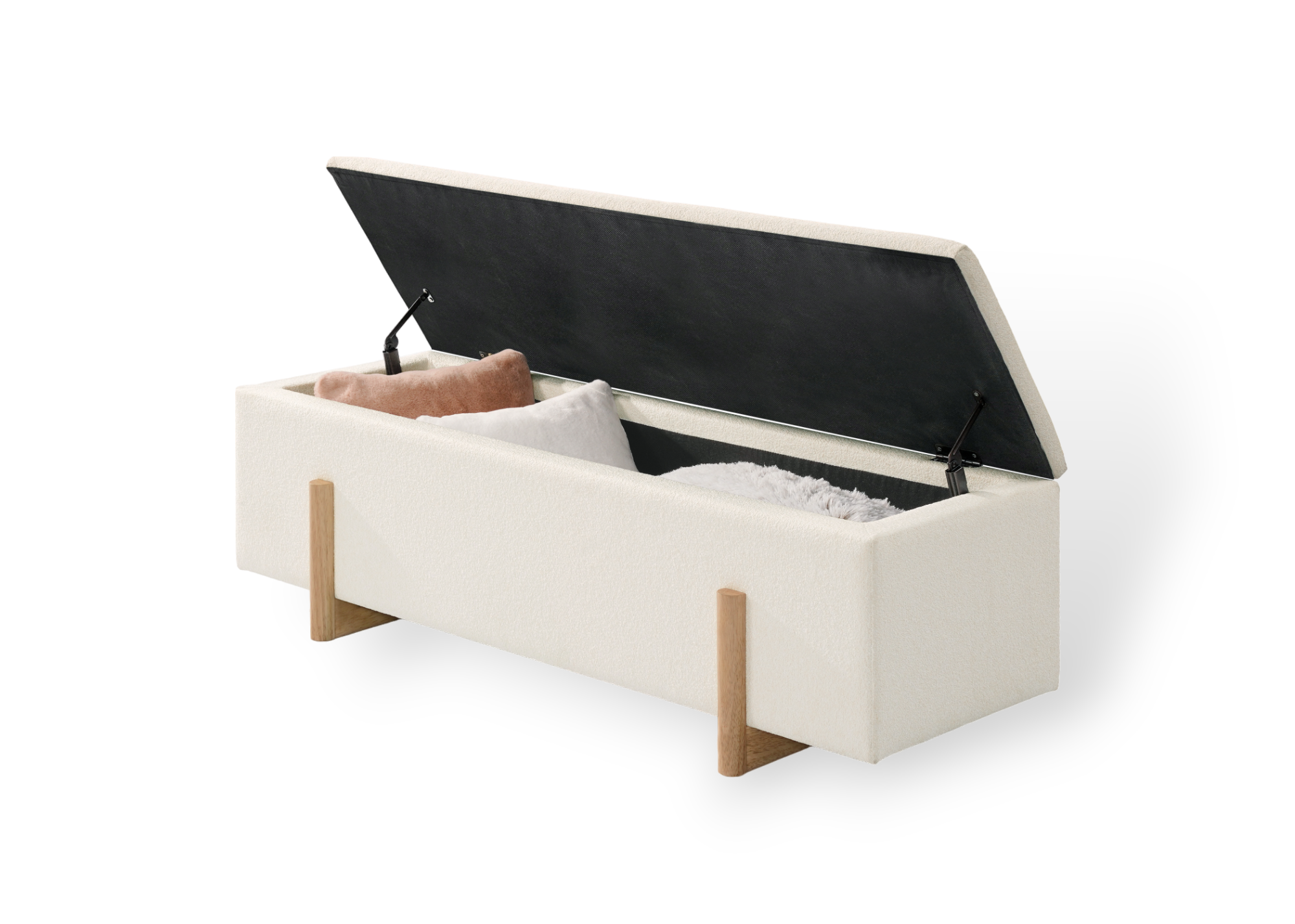 There are many ways to use this boucle bench. It’s a multi-functional bench that can be used as a storage bench for the bedroom, to provide additional seating in general living spaces, used in entryways, or could be a decorative item used as the finishing touch for any room in the home.
