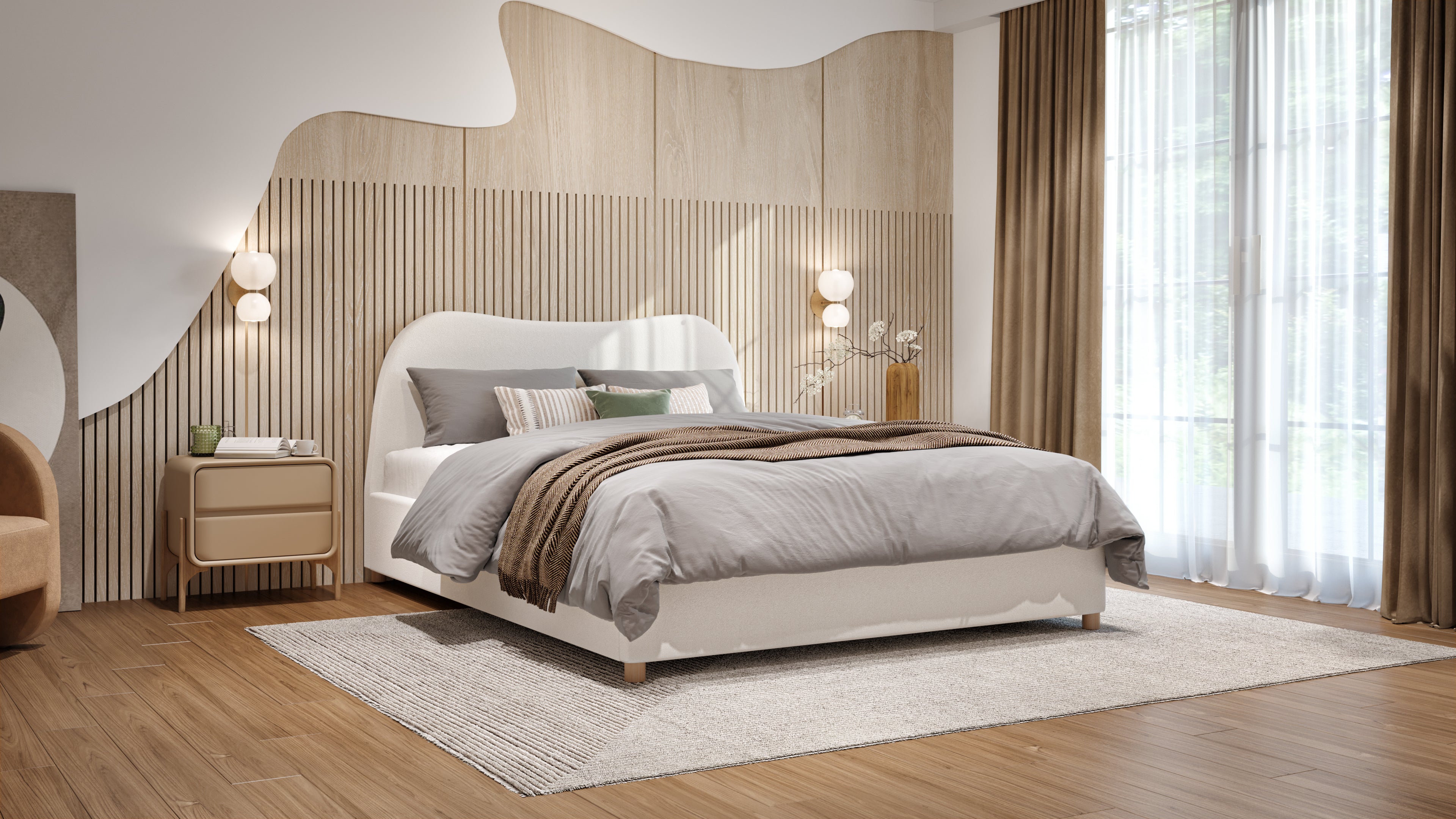 Experience modern elegance with Celine. The uniquely curved headboard design adds an artful touch to your space, seamlessly blending style and functionality.