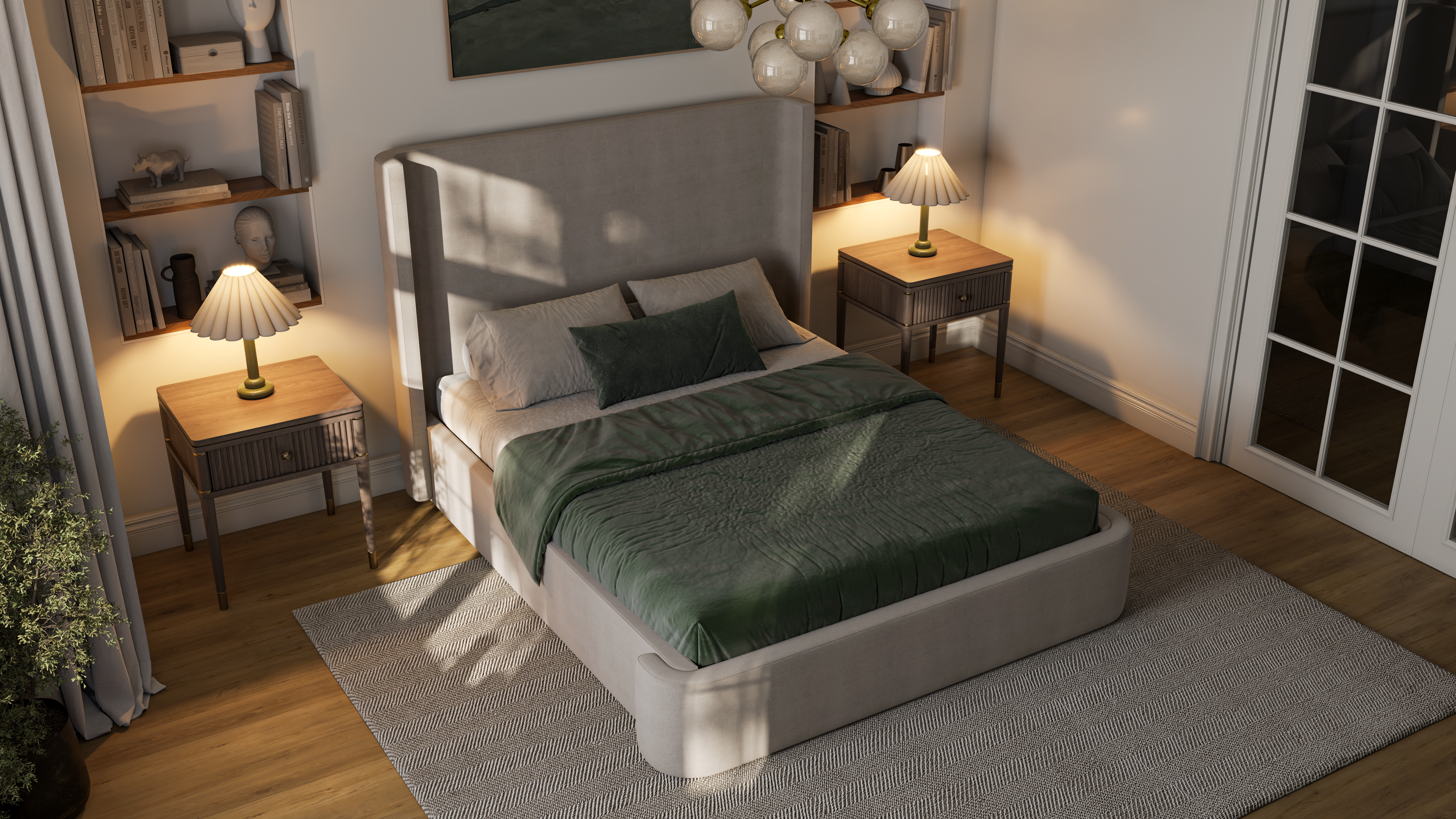 Tall, Statement Headboard: Designed to impress, the tall headboard serves as both a striking focal point and a supportive backdrop for reading, lounging, or unwinding.