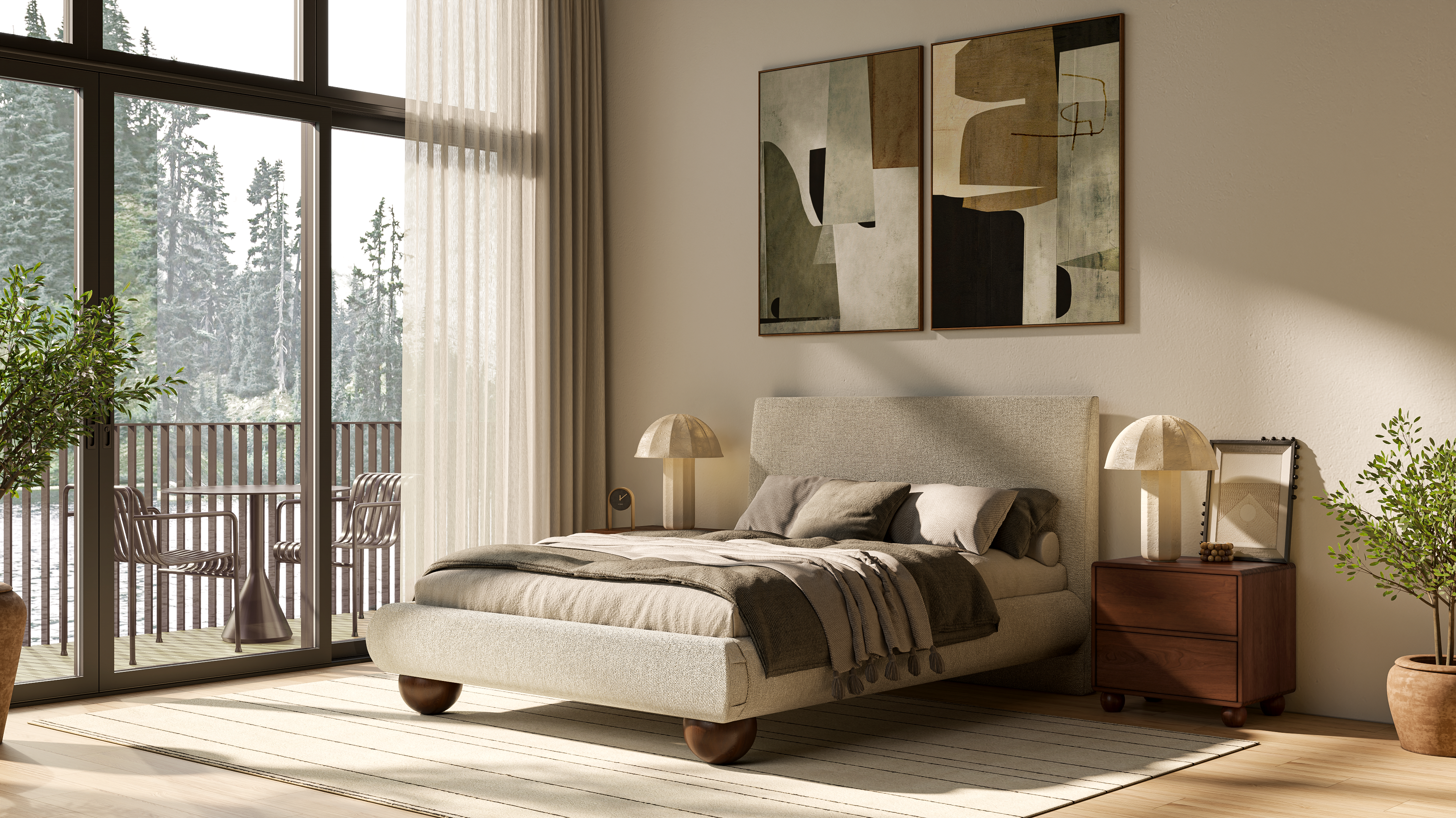 Oversized Solid Wood Ball Feet: Bold, sculptural feet crafted from solid wood in a rich walnut finish, adding a grounded, mid-century charm to the design.