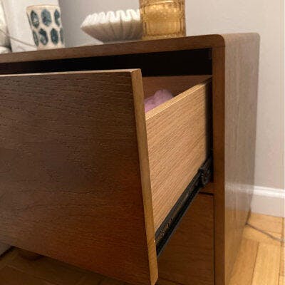 Compact Yet Spacious Storage: A well-proportioned design with two roomy drawers, offering ample space for bedside essentials while maintaining a sleek profile.